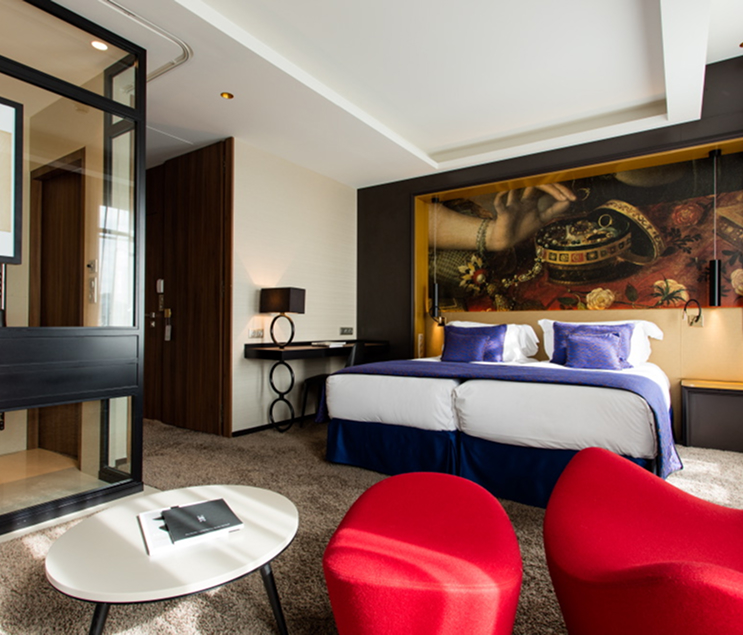 Dans la lumière tamisée, le mobilier minimaliste côtoie des œuvres inspirées des collections du Musée des Beaux-Arts. Réveil en douceur avec votre café expresso, connexion instantanée au Wi-Fi et literie moelleuse : tout est pensé pour vous offrir un véritable cocon.
